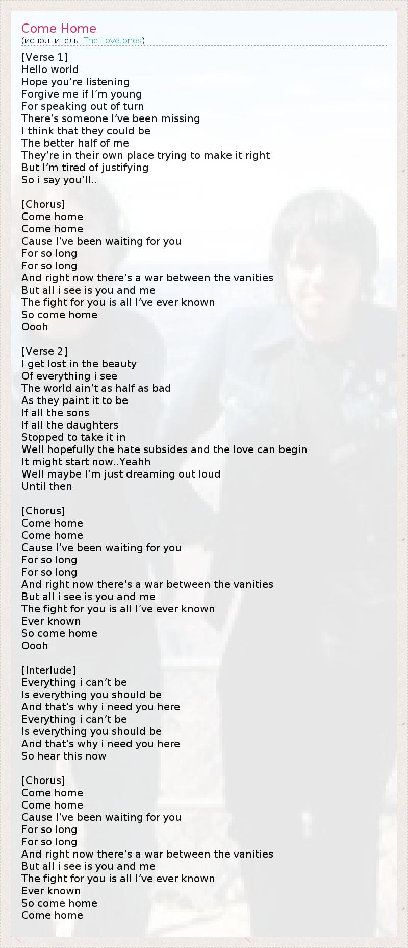 А как ты думаешь, о чем песня "Come Home" ?