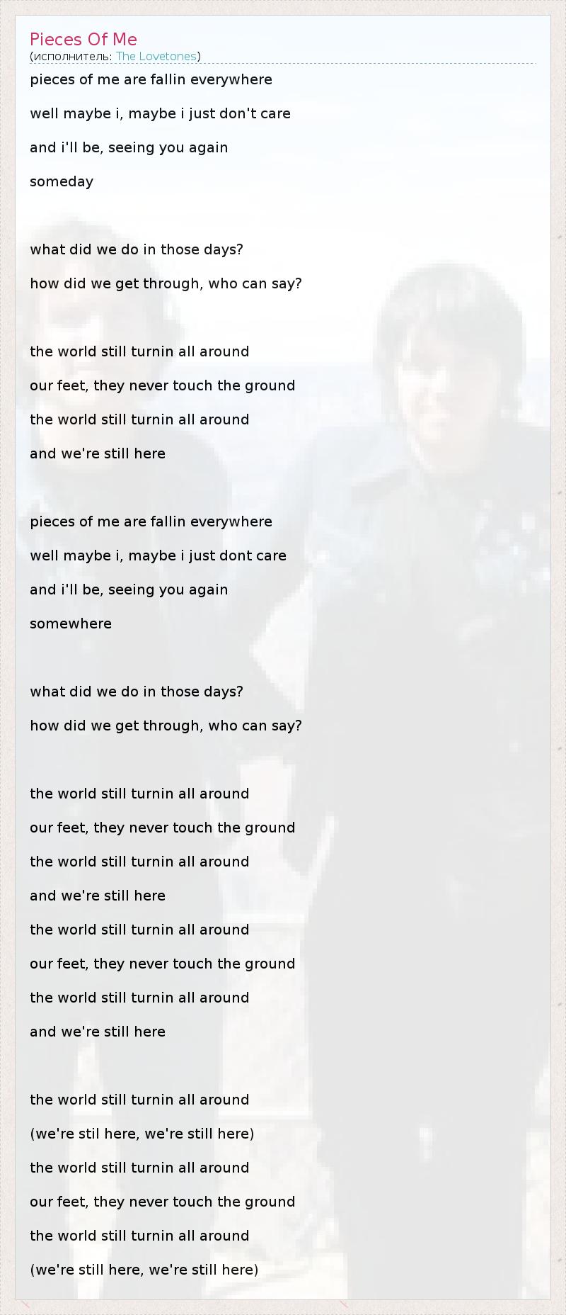 А как ты думаешь, о чем песня "Pieces Of Me" ?