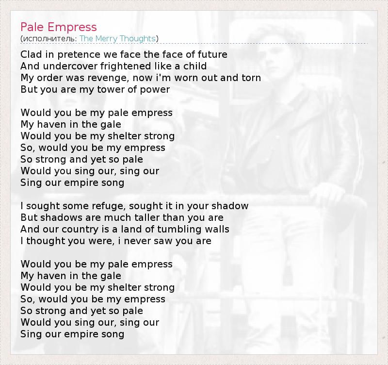 А как ты думаешь, о чем песня "Pale Empress" ?