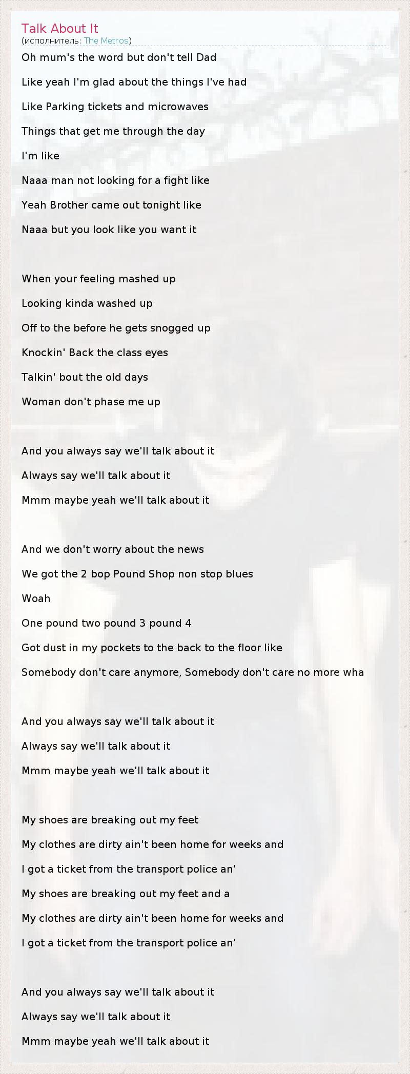 Это интересно:The Metros – группа родом из Peckham что в Южном Лондоне. Группа была образована в 2006 году вокалистом Saul Adamczewski и гитаристом Jak Payne, когда те еще учились в школе. Участники коллектива ассоциируют себя как punk and roll band и музыкальный бэкграунд.Записав свои первые 5 демо треков за 2 дня в марте 2006-го в Honor Oak Park с независимым продюсером и по совместительству DJ Julian Kupper, группа затем продолжила работу с... продолжение