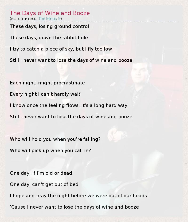 А как ты думаешь, о чем песня "The Days of Wine and Booze" ?