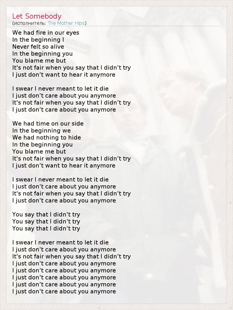 А как ты думаешь, о чем песня "Let Somebody" ?