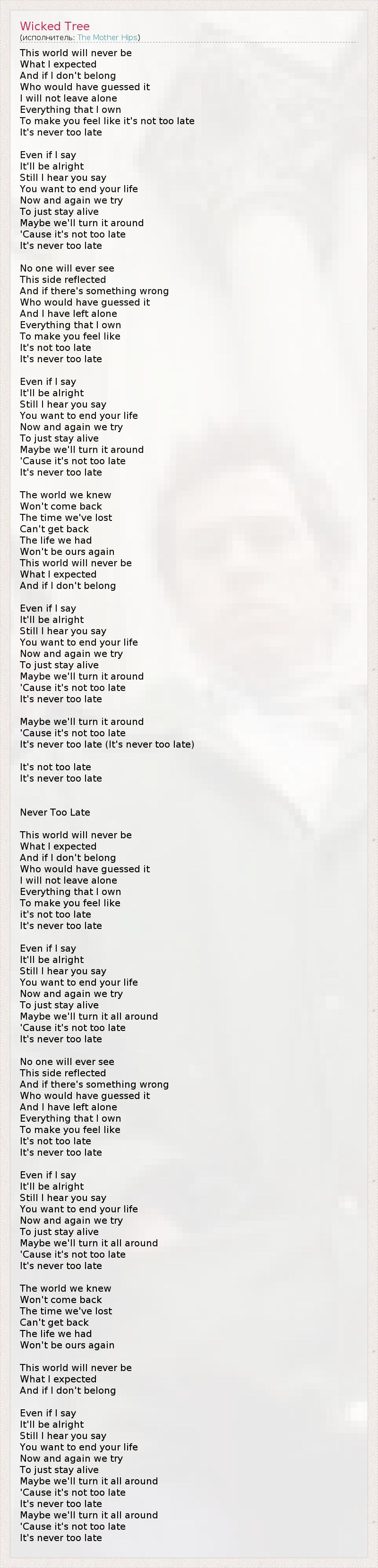 А как ты думаешь, о чем песня "Wicked Tree" ?