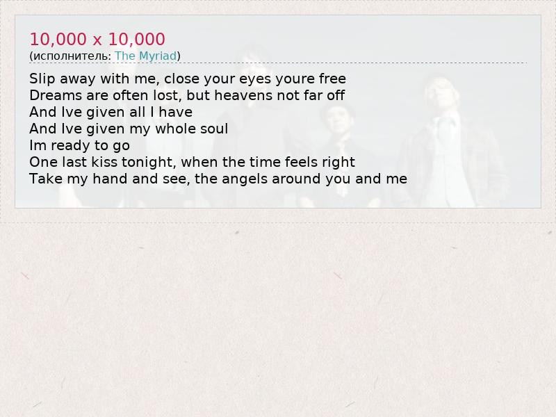 А как ты думаешь, о чем песня "10,000 x 10,000" ?