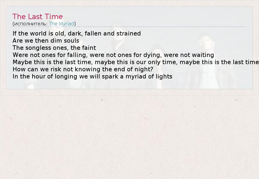 Maybe this is the last time, maybe this is our only time, maybe this is the last time