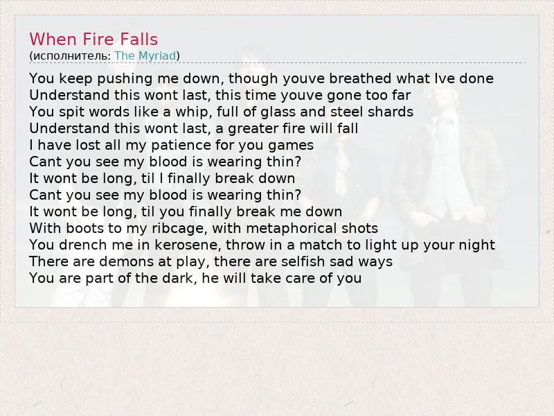 А как ты думаешь, о чем песня "When Fire Falls" ?