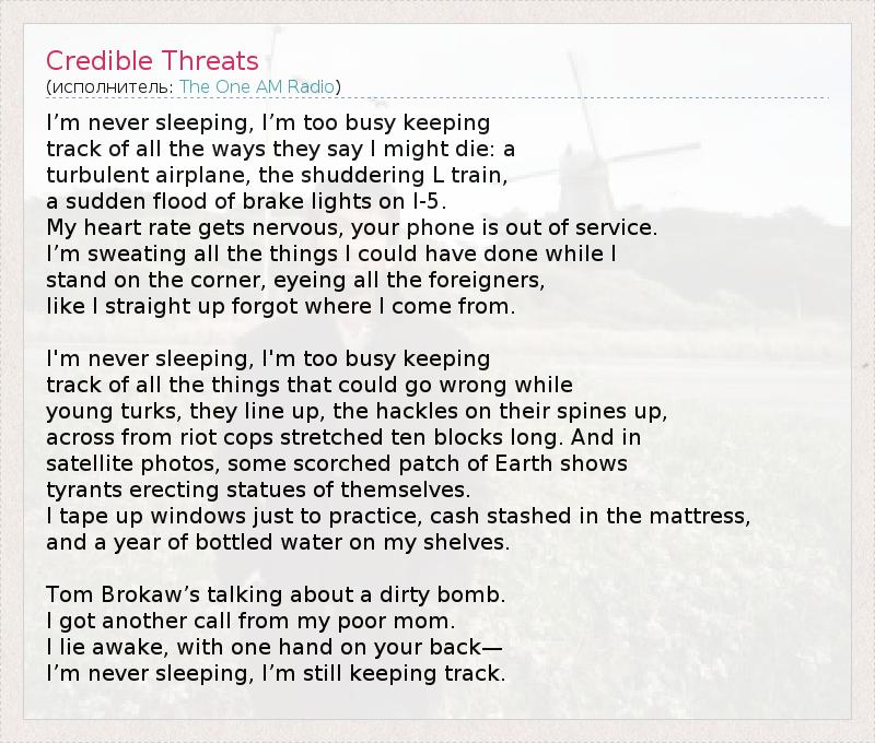 А как ты думаешь, о чем песня "Credible Threats" ?