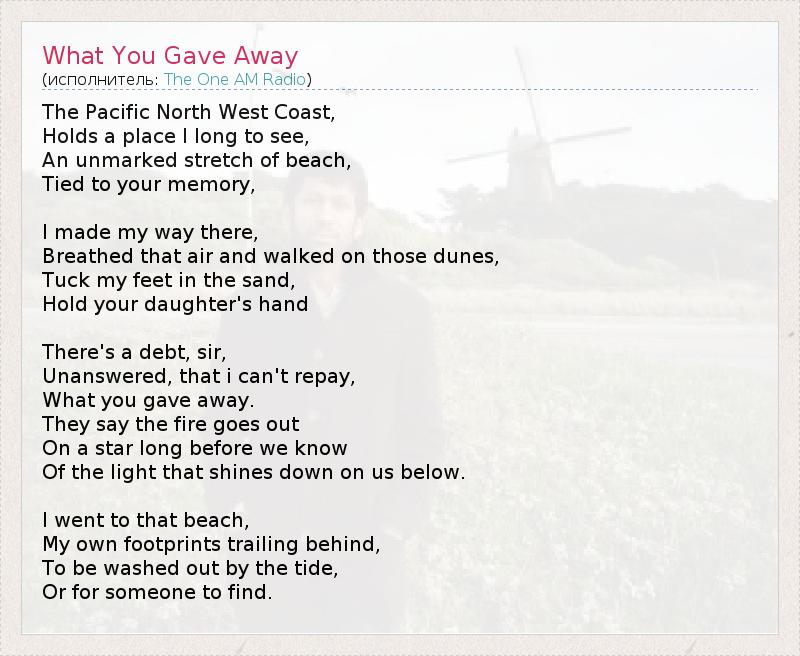 А как ты думаешь, о чем песня "What You Gave Away" ?