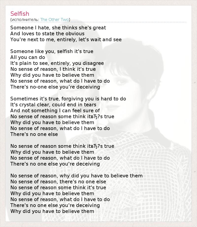А как ты думаешь, о чем песня "Selfish" ?