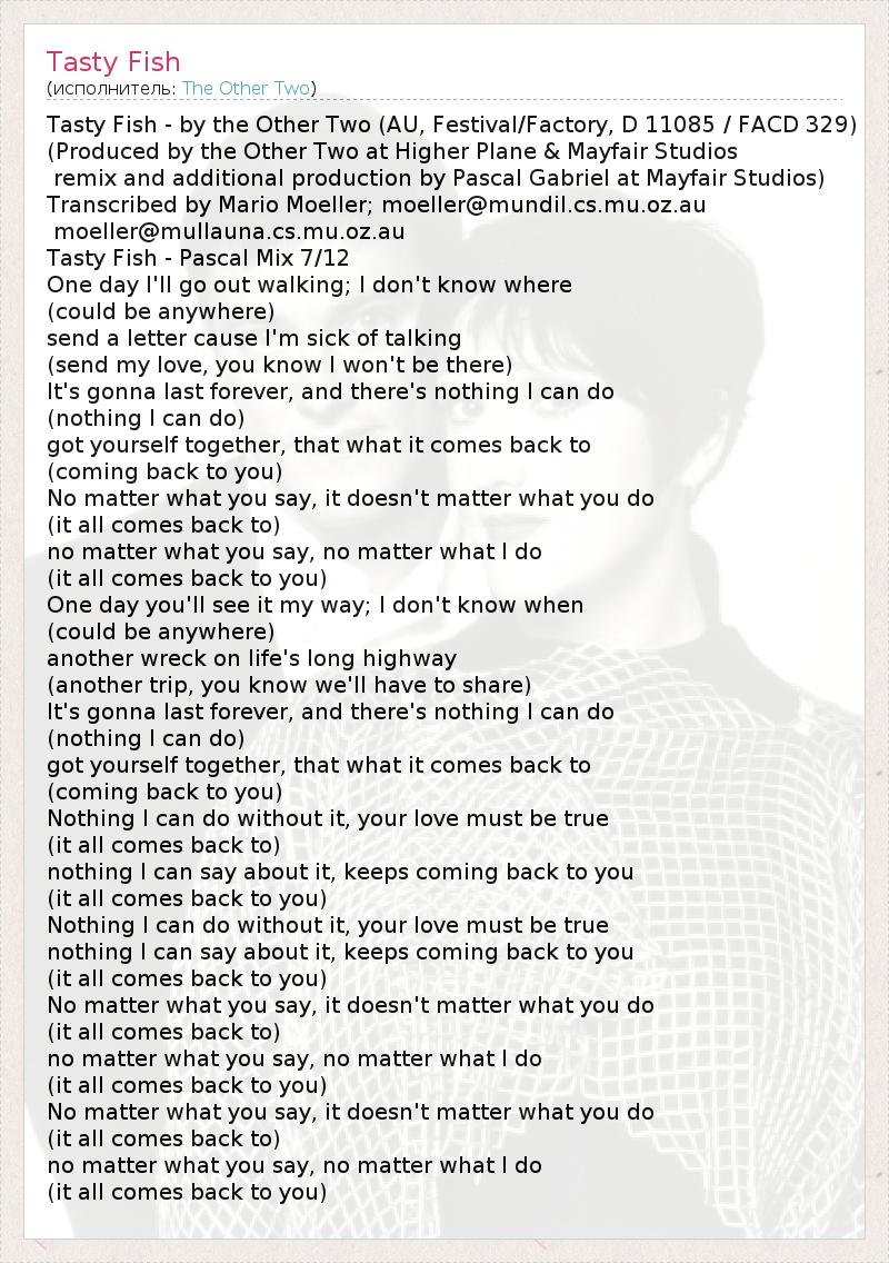 А как ты думаешь, о чем песня "Tasty Fish" ?