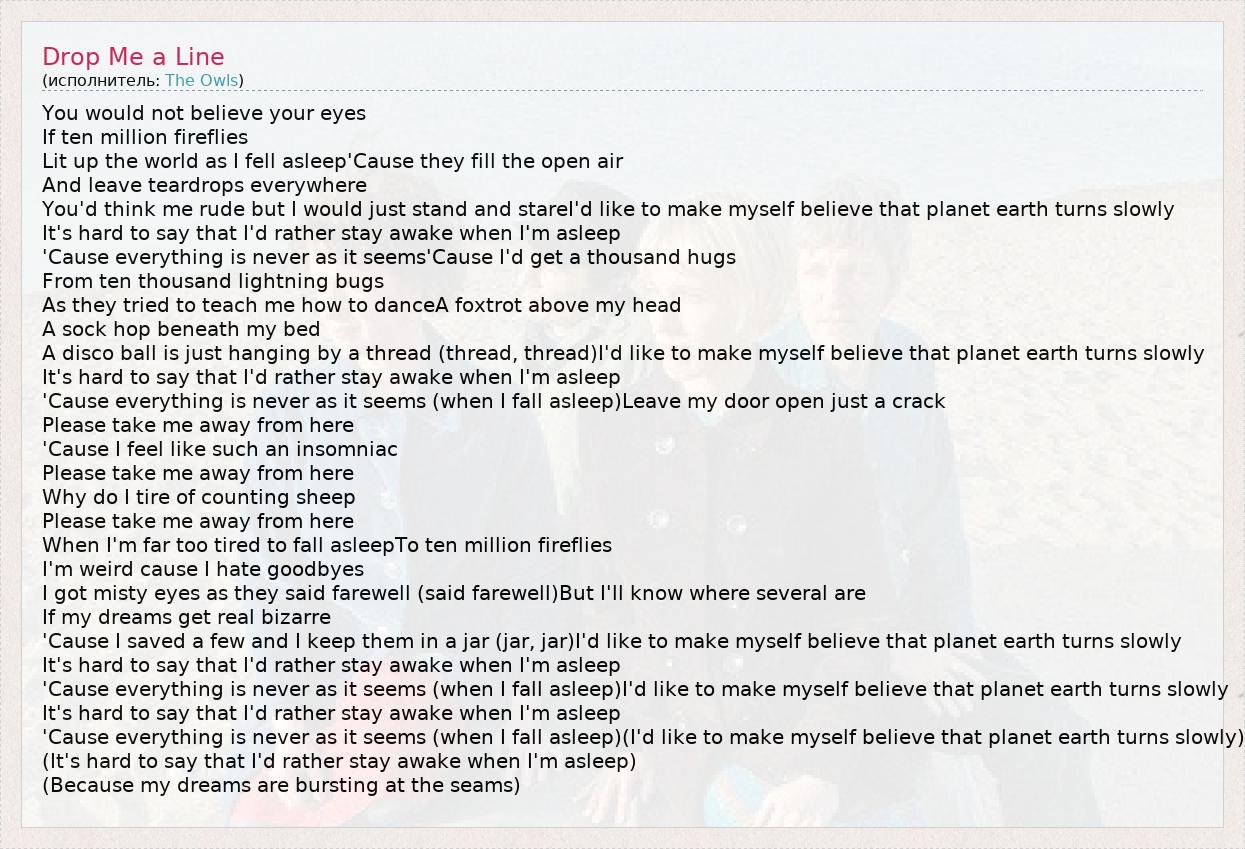 А как ты думаешь, о чем песня "Drop Me a Line" ?