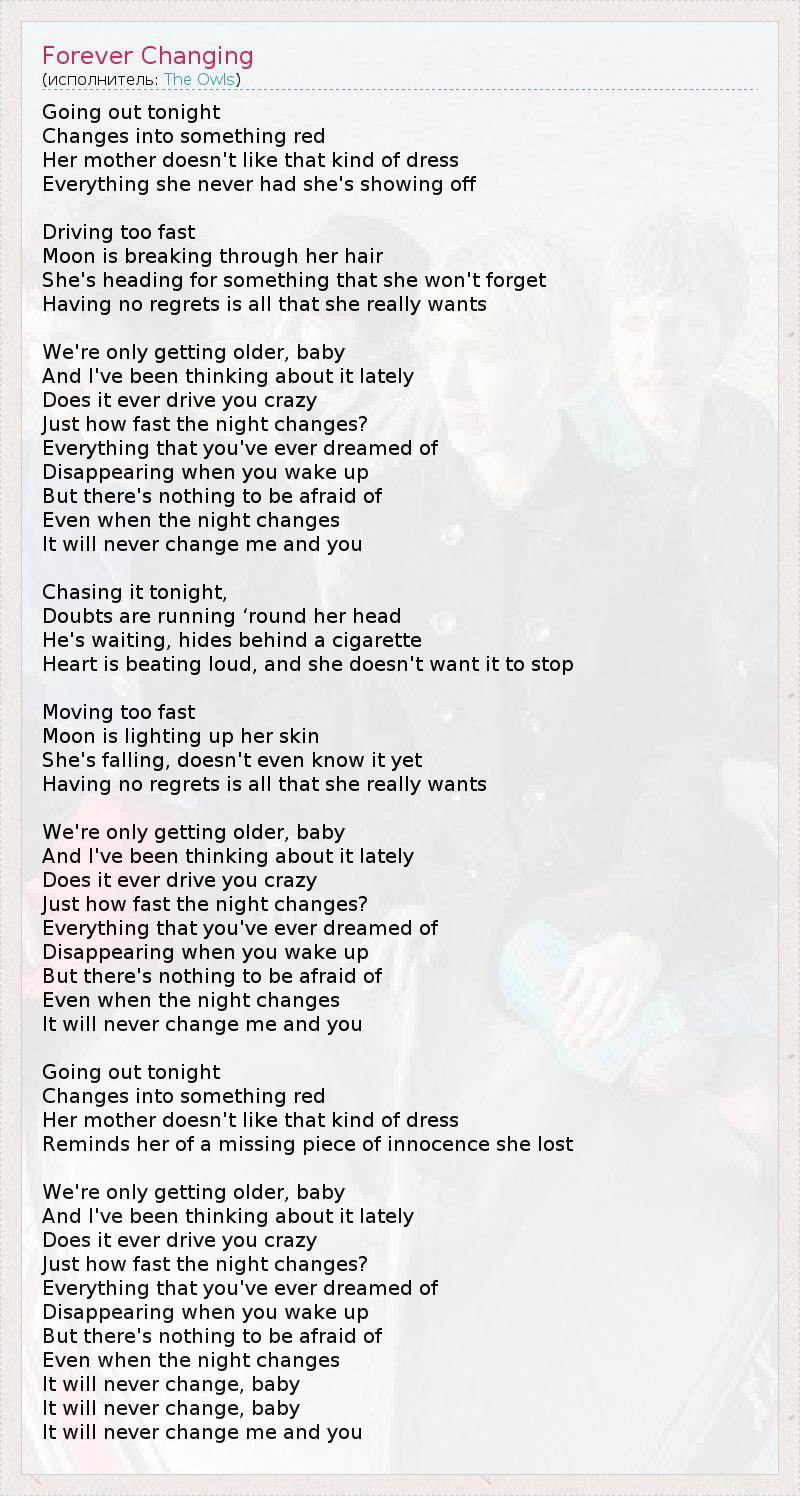 А как ты думаешь, о чем песня "Forever Changing" ?