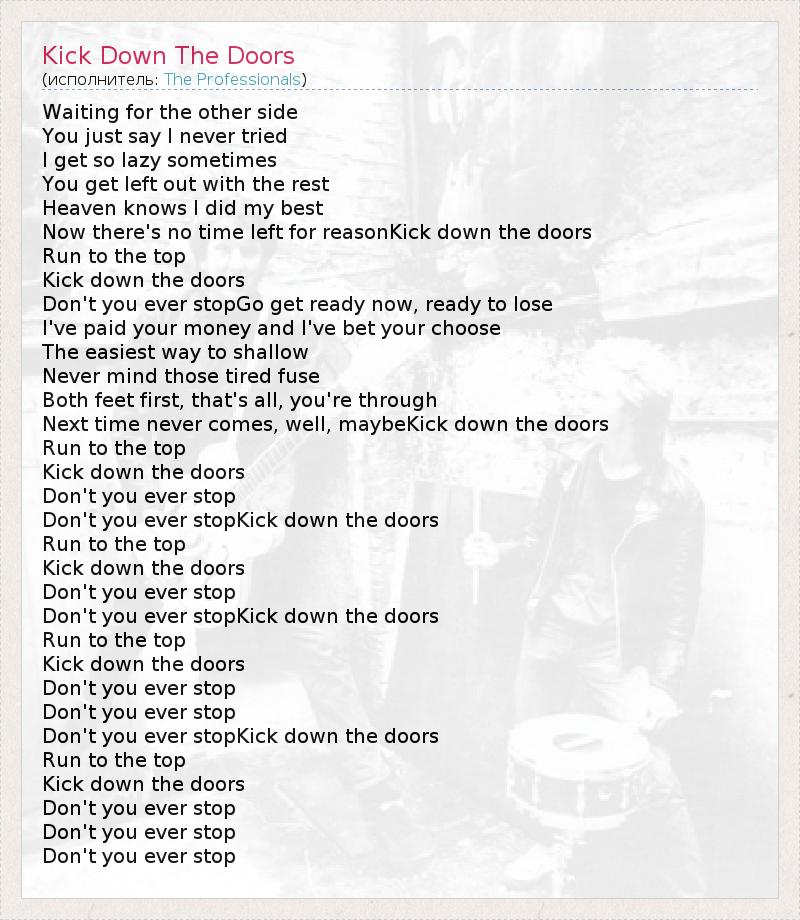 А как ты думаешь, о чем песня "Kick Down The Doors" ?