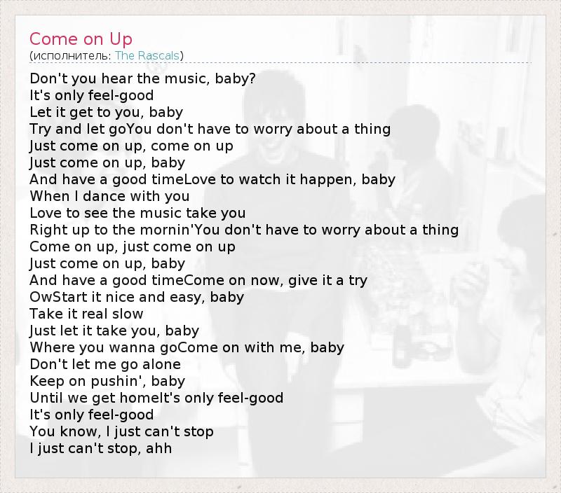 Это интересно:Существует несколько исполнителей с названием "The Rascals":1) Американская группа, исполнявшая т.н. "голубоглазый соул"Years active 1965–1972, 1988, 2012–presentThe Rascals (initially known as The Young Rascals) are an American blue-eyed soul group initially active during the years 1965–72. Between 1966 and 1968 the New Jersey act reached the top 20 of the Billboard Hot 100 with nine singles, including the #1s "Good Lovin'" (1966), "Groovin'" (1967), and "People Got to Be Free" (1968), as well as big radio hits such as the much-covered... продолжение