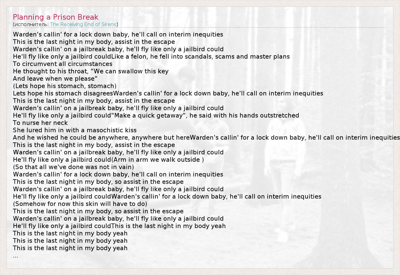 А как ты думаешь, о чем песня "Planning a Prison Break" ?