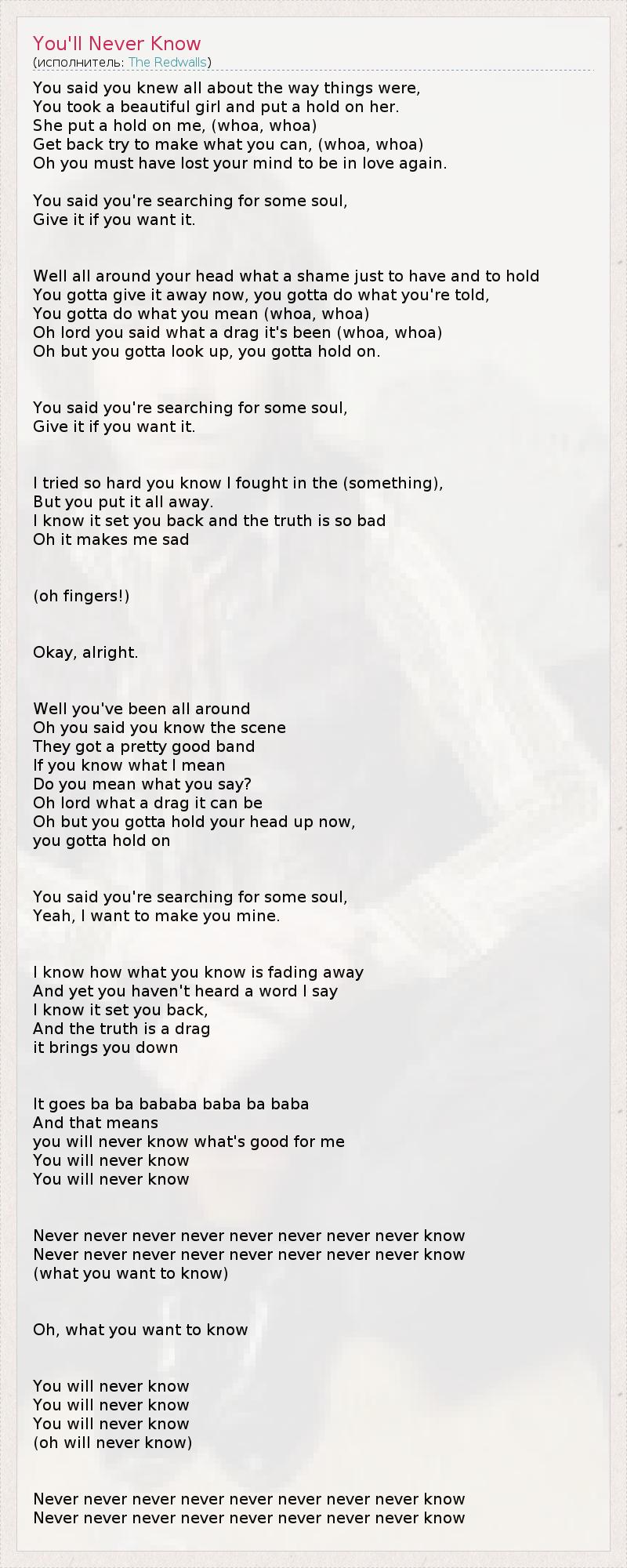А как ты думаешь, о чем песня "You'll Never Know" ?