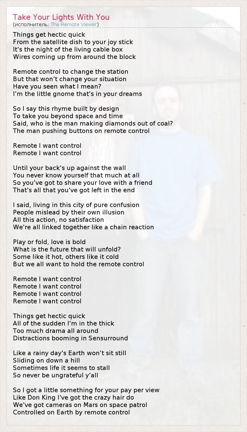 А как ты думаешь, о чем песня "Take Your Lights With You" ?