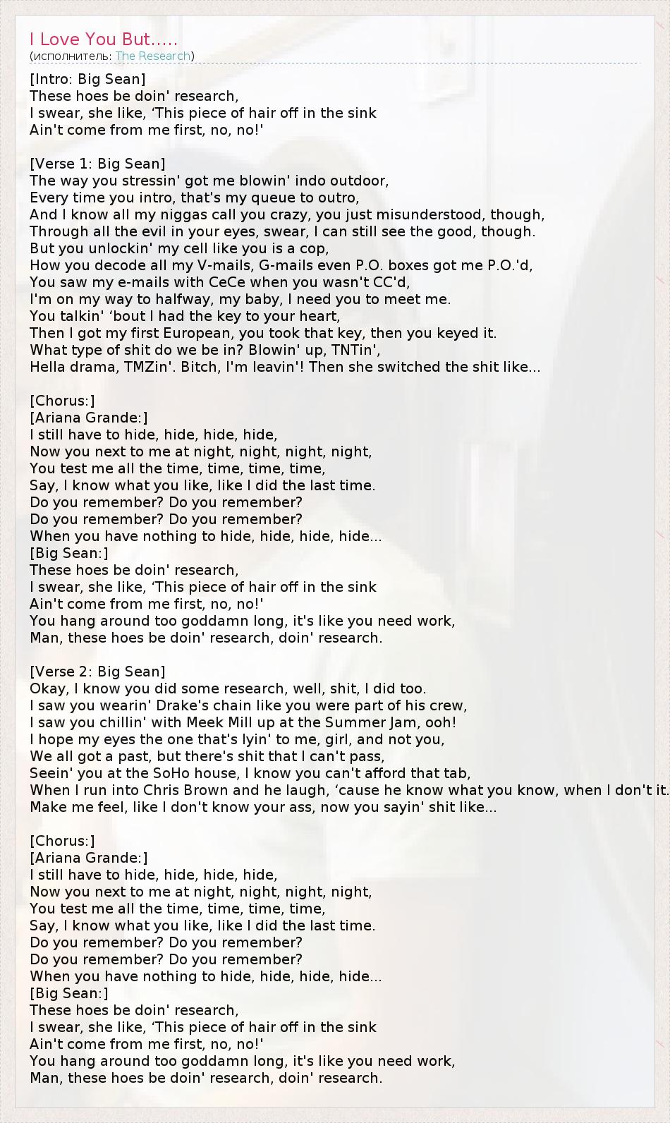 А как ты думаешь, о чем песня "I Love You But....." ?