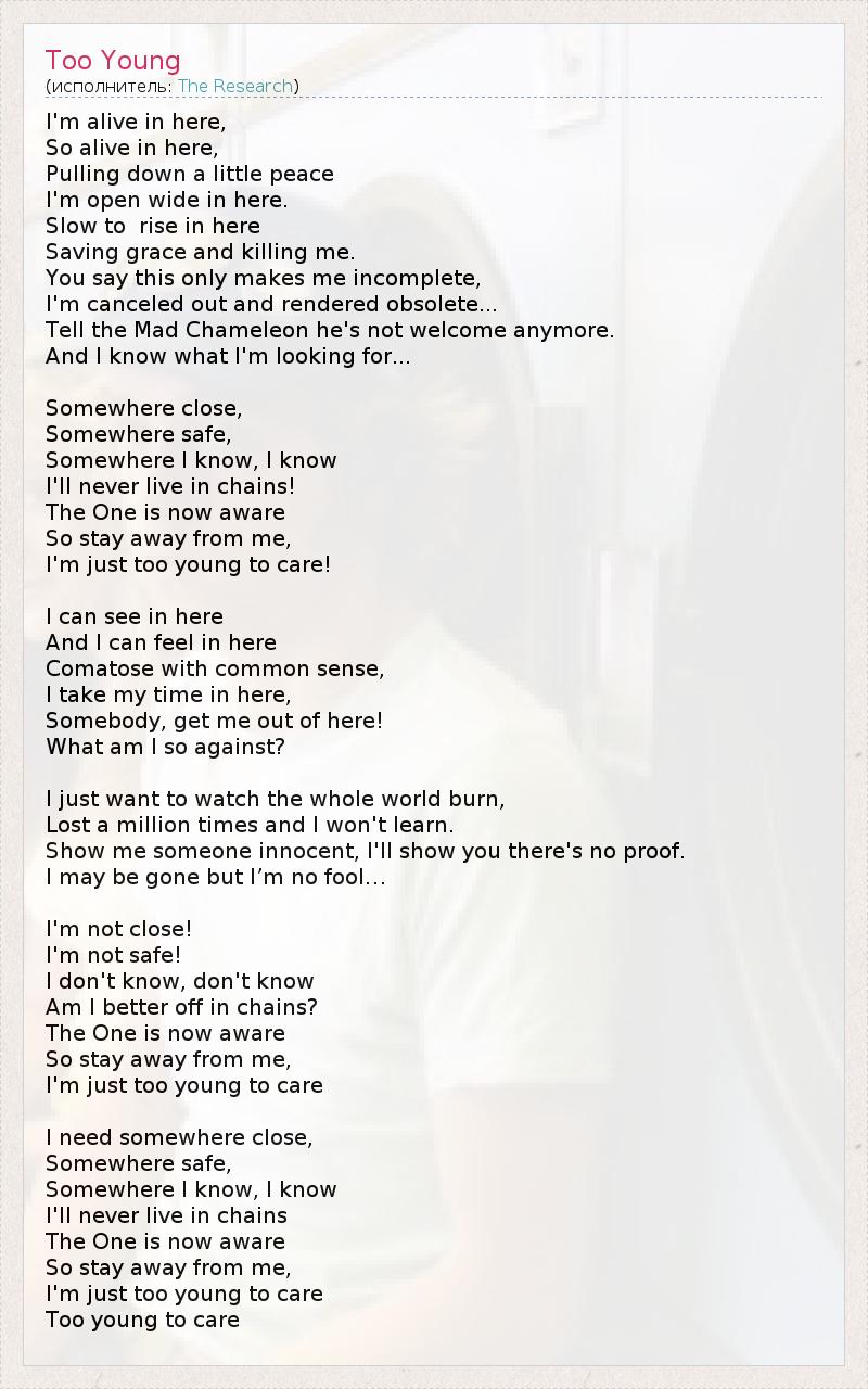 Я слишком молод, чтобы о чем-то беспокоиться,