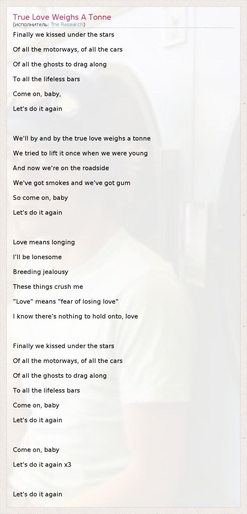 А как ты думаешь, о чем песня "True Love Weighs A Tonne" ?
