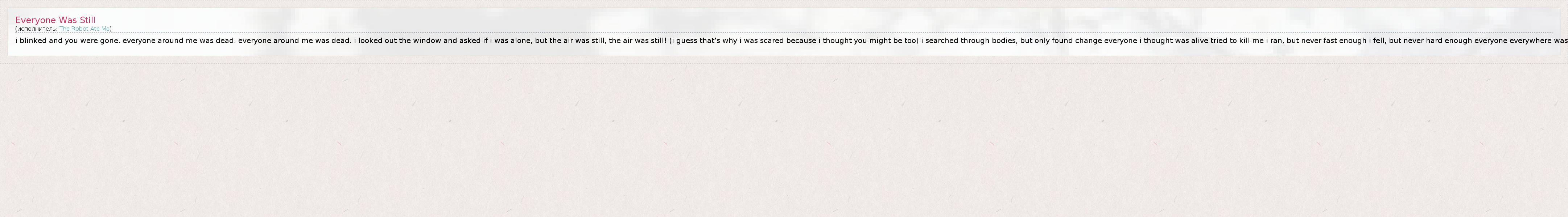 А как ты думаешь, о чем песня "Everyone Was Still" ?