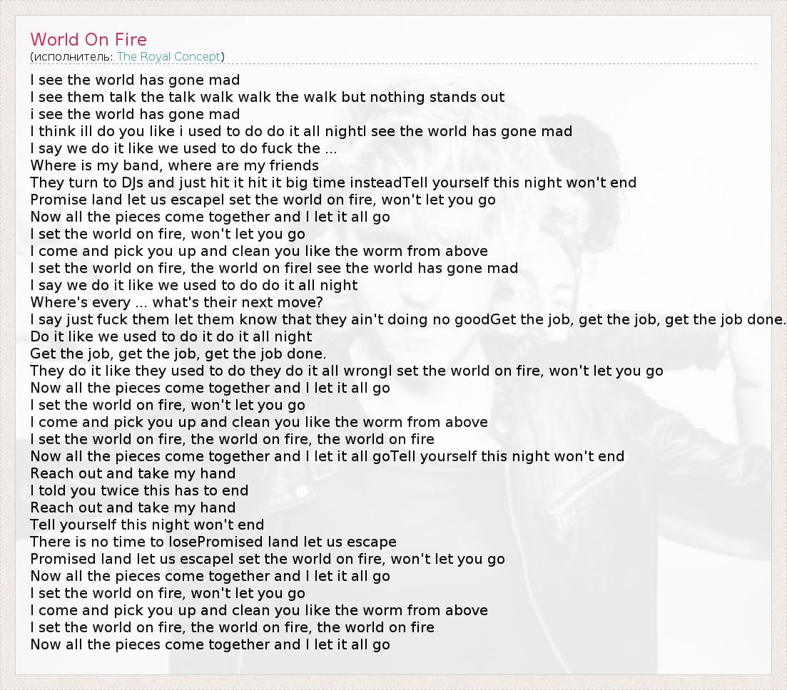 They do it like they used to do they do it all wrongI set the world on fire, won't let you go