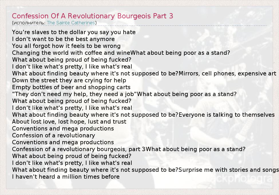 А как ты думаешь, о чем песня "Confession Of A Revolutionary Bourgeois Part 3" ?
