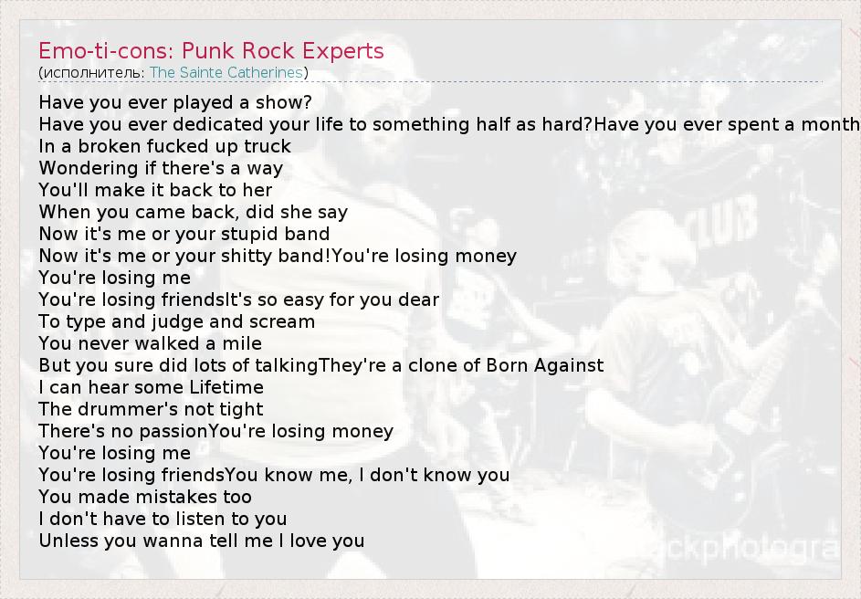 А как ты думаешь, о чем песня "Emo-ti-cons: Punk Rock Experts" ?