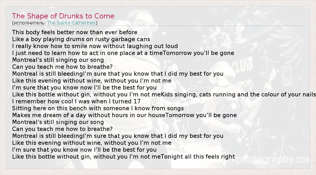 А как ты думаешь, о чем песня "The Shape of Drunks to Come" ?