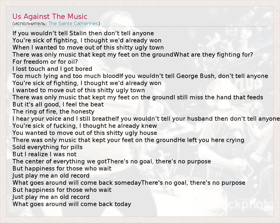А как ты думаешь, о чем песня "Us Against The Music" ?