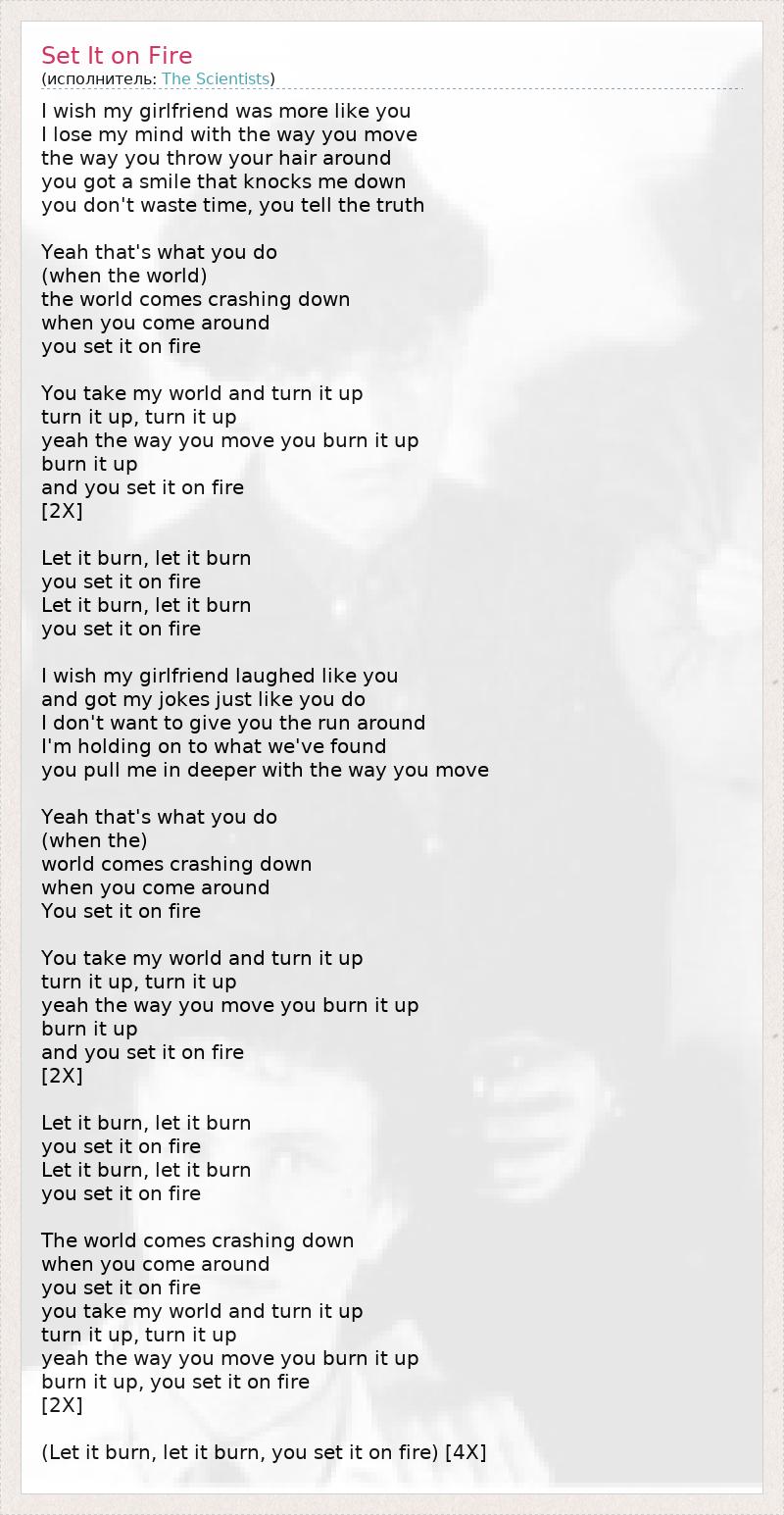 А как ты думаешь, о чем песня "Set It on Fire" ?