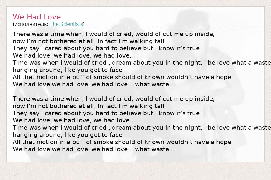 Time was when I would of cried , dream about you in the night, I believe what a waste