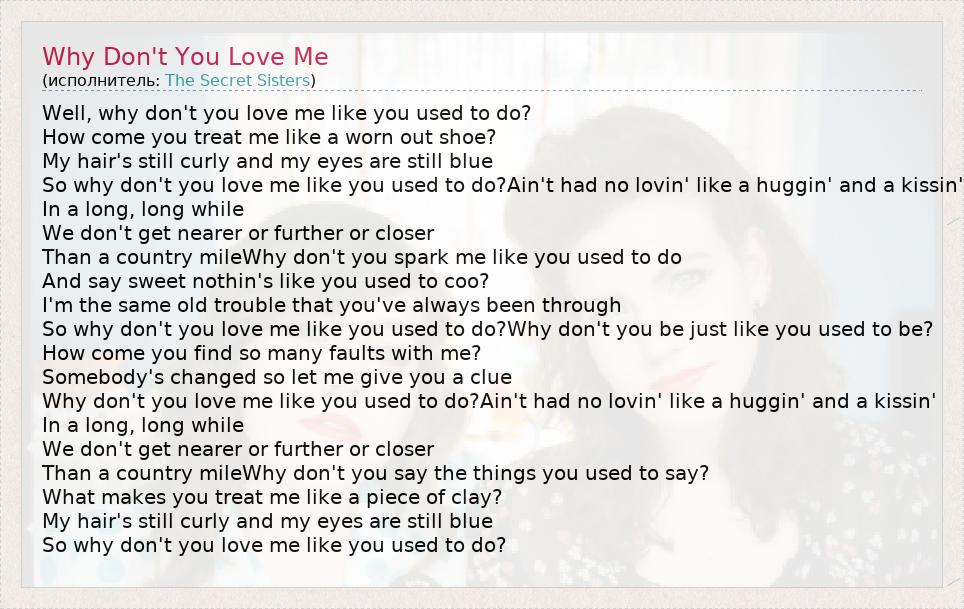 А как ты думаешь, о чем песня "Why Don't You Love Me" ?
