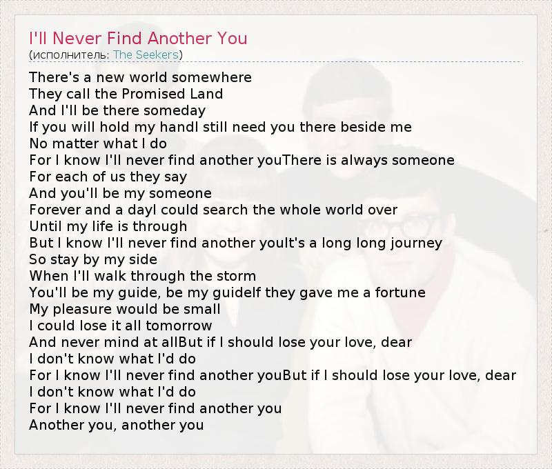 А как ты думаешь, о чем песня "I'll Never Find Another You" ?