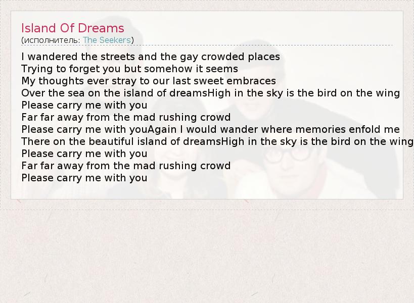 А как ты думаешь, о чем песня "Island Of Dreams" ?