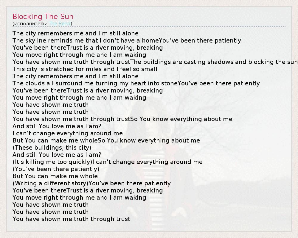 А как ты думаешь, о чем песня "Blocking The Sun" ?