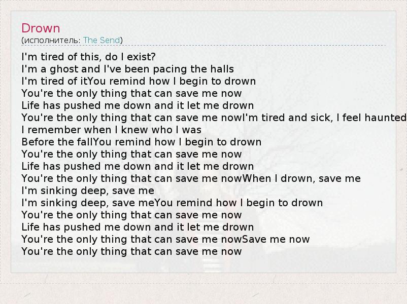 You're the only thing that can save me nowI'm tired and sick, I feel haunted