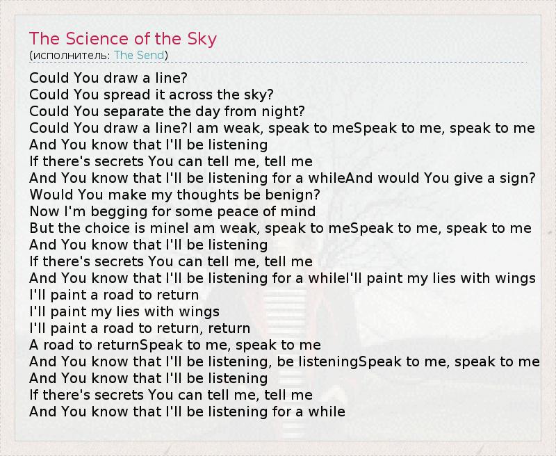 А как ты думаешь, о чем песня "The Science of the Sky" ?