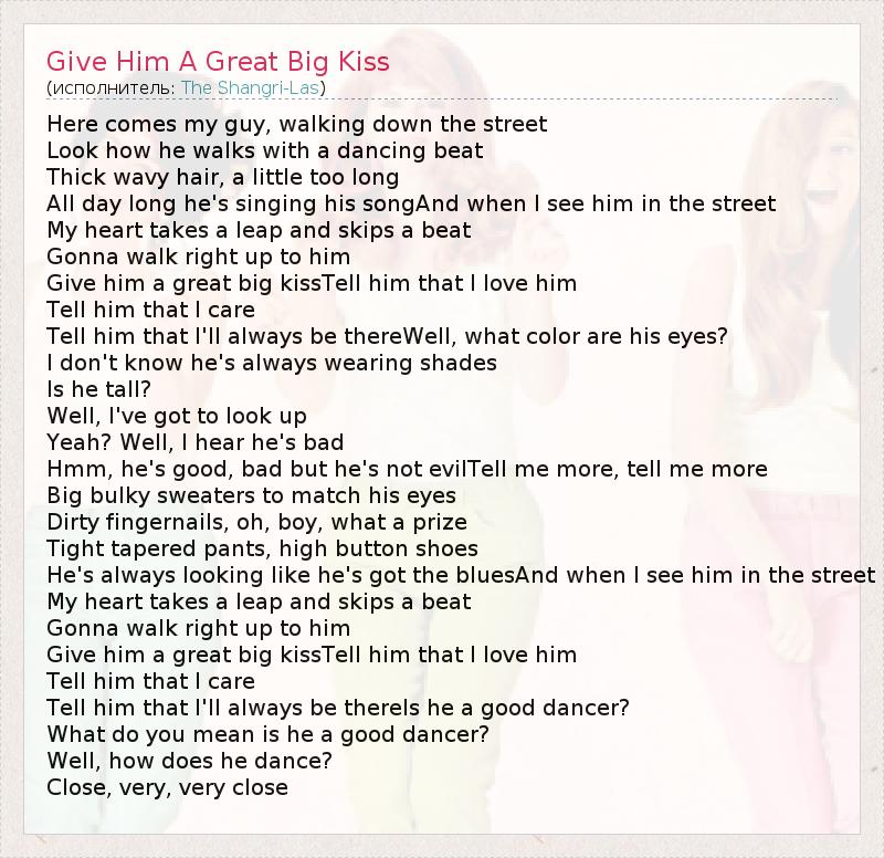 А как ты думаешь, о чем песня "Give Him A Great Big Kiss" ?