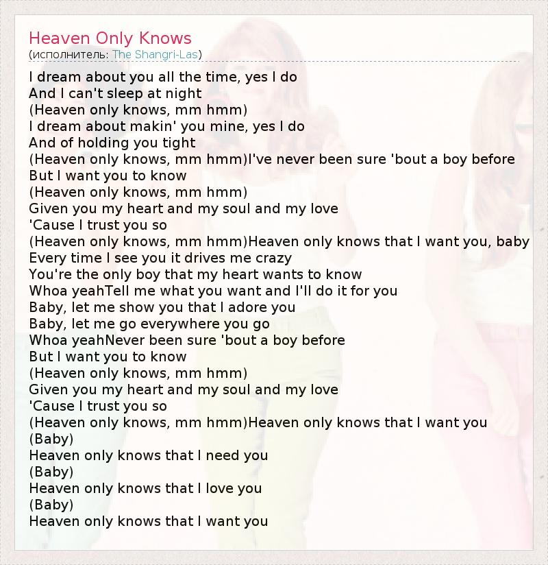 А как ты думаешь, о чем песня "Heaven Only Knows" ?