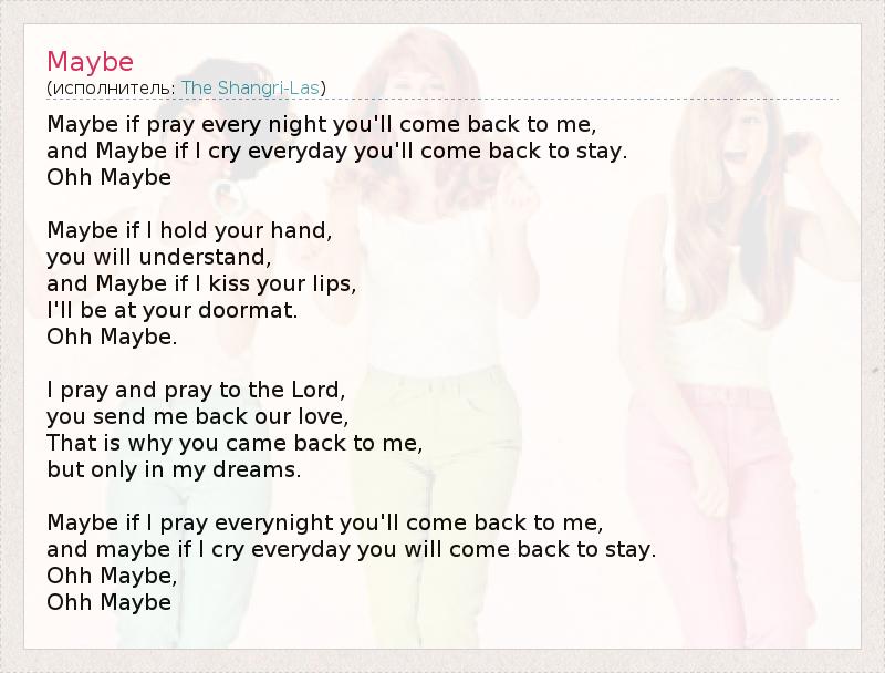 Может быть, если я молюсь каждую ночь вы придете ко мне,