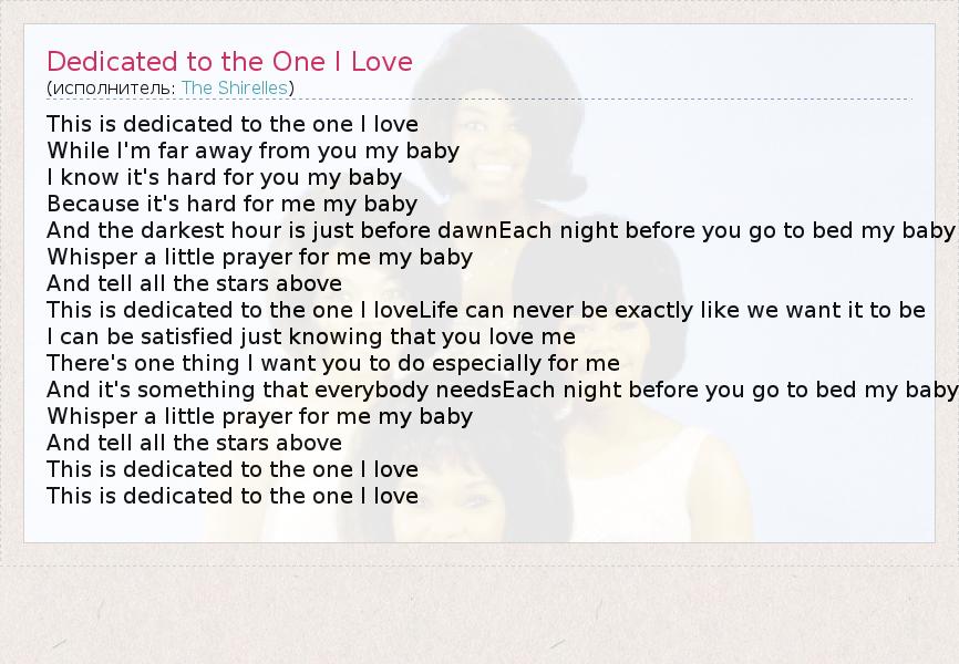 А как ты думаешь, о чем песня "Dedicated to the One I Love" ?