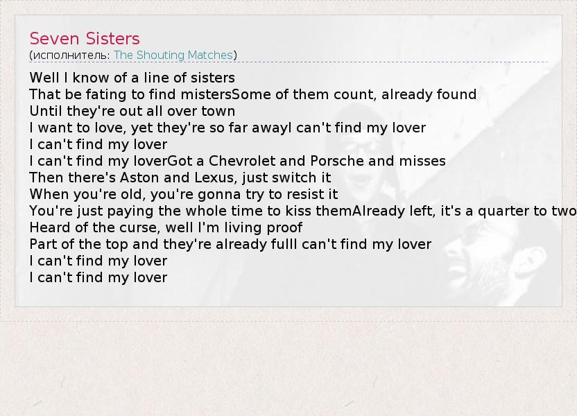 А как ты думаешь, о чем песня "Seven Sisters" ?