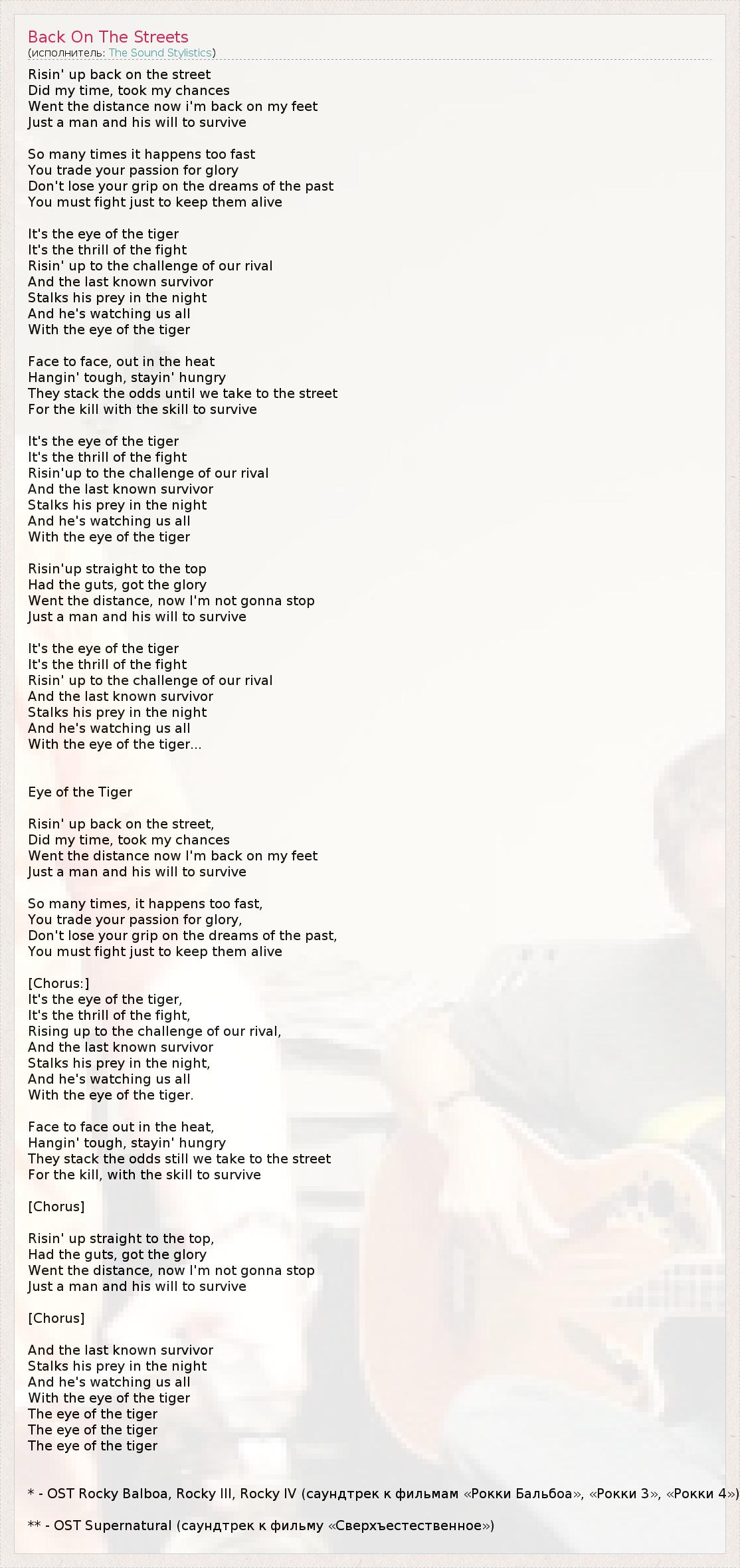 А как ты думаешь, о чем песня "Back On The Streets" ?