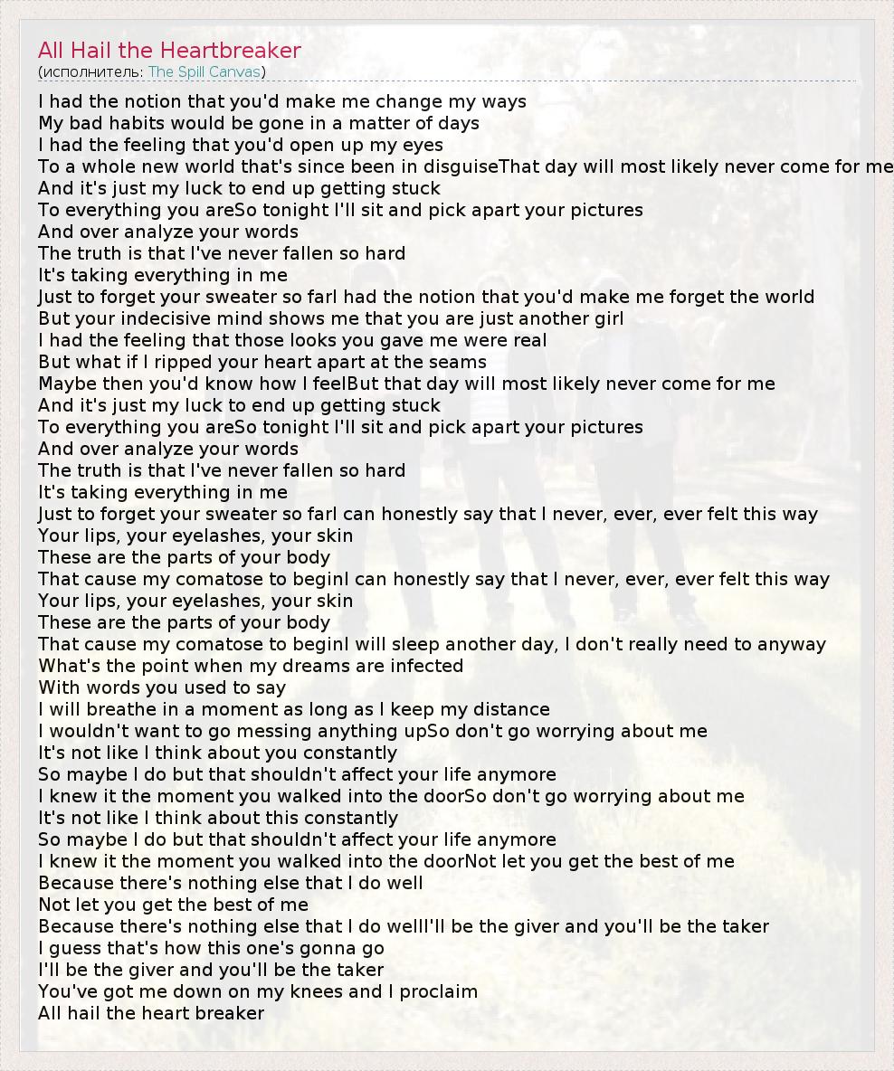 А как ты думаешь, о чем песня "All Hail the Heartbreaker" ?