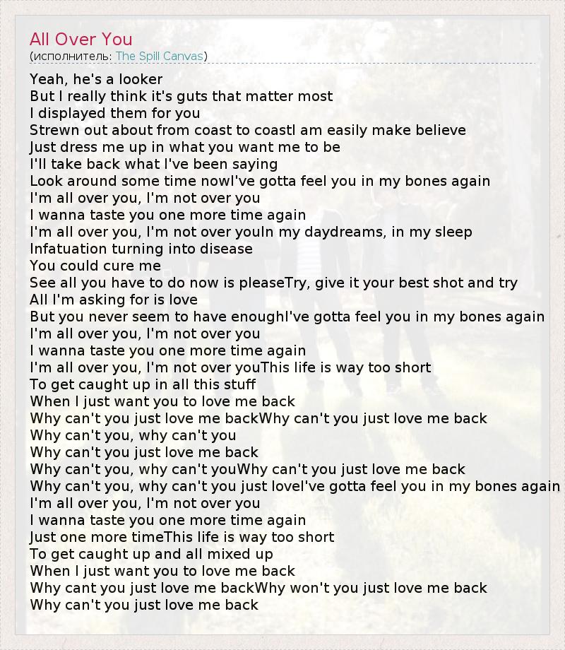 I'm all over you, I'm not over youIn my daydreams, in my sleep