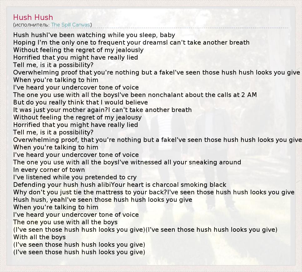 А как ты думаешь, о чем песня "Hush Hush" ?