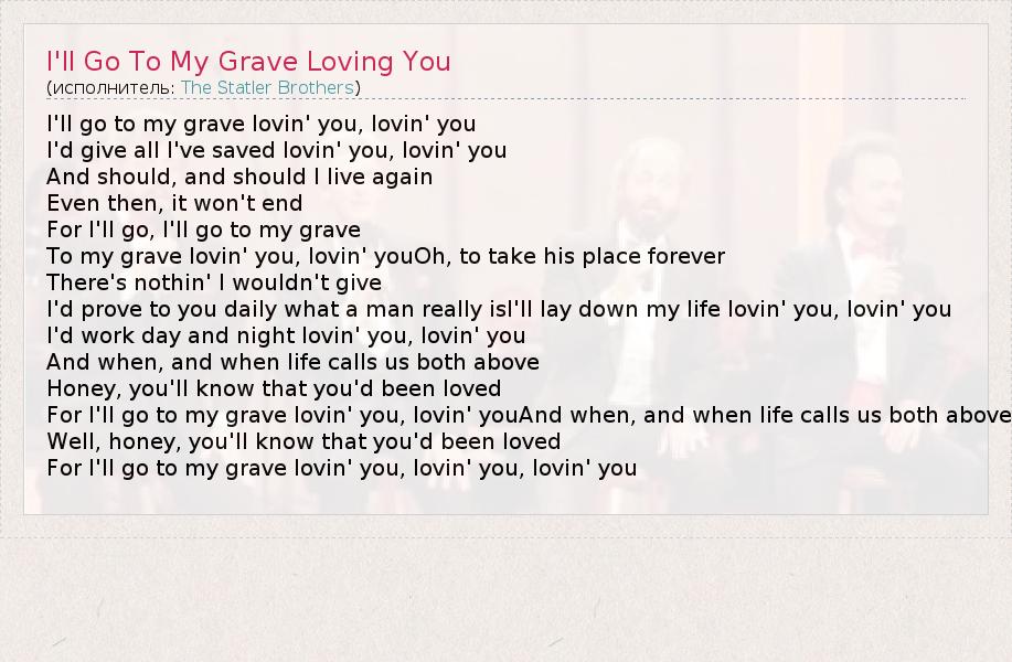 For I'll go to my grave lovin' you, lovin' youAnd when, and when life calls us both above