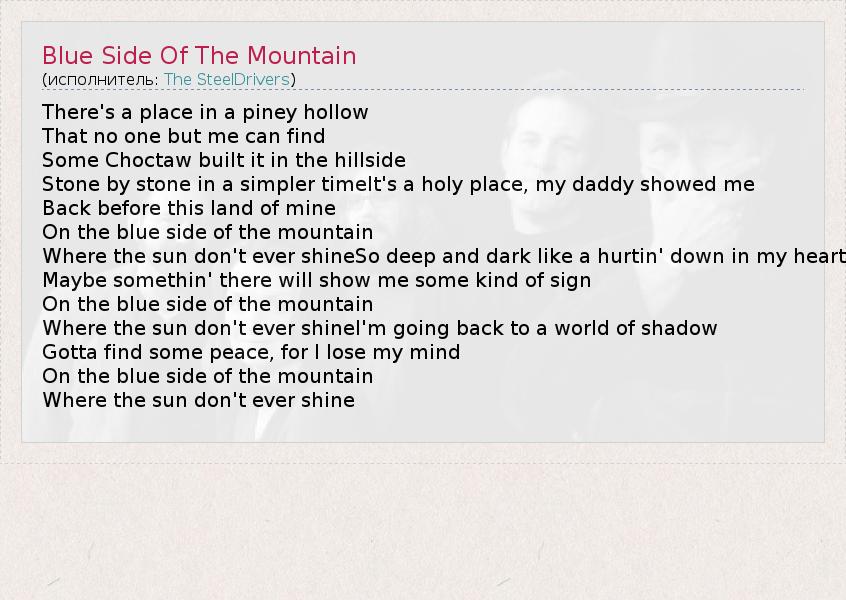 А как ты думаешь, о чем песня "Blue Side Of The Mountain" ?