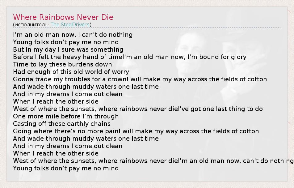 А как ты думаешь, о чем песня "Where Rainbows Never Die" ?